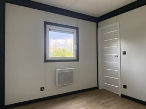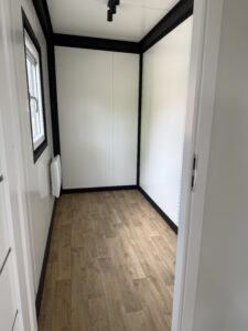 De niet dragende binnenwanden worden uitgevoerd als sandwichpanelen van het merk Europanels. De badkamer wordt aan de binnenzijde voorzien van spc. Het verlaagd plafond is afgewerkt met spc. De koven worden aan de binnenzijde afgedekt met zwarte tin in een basiskleur RAL9005 mat.