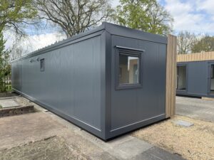 Deze 10x3.2 woonunit heeft een totale lengte van 09.96 meter en een breedte van 3.20 meter. De totale hoogte van de unit is 277 cm en heeft een totaal gewicht van 4000kg.