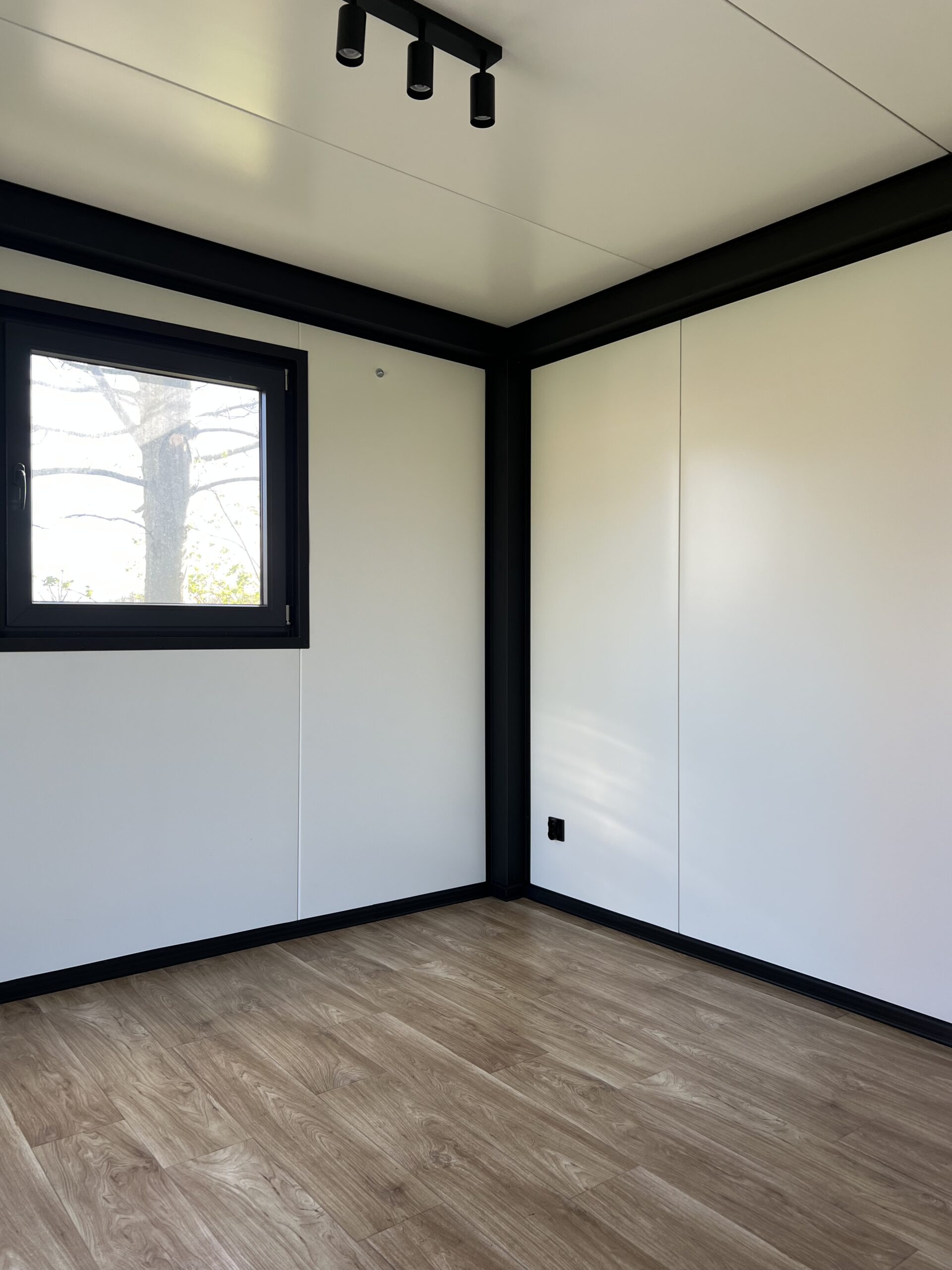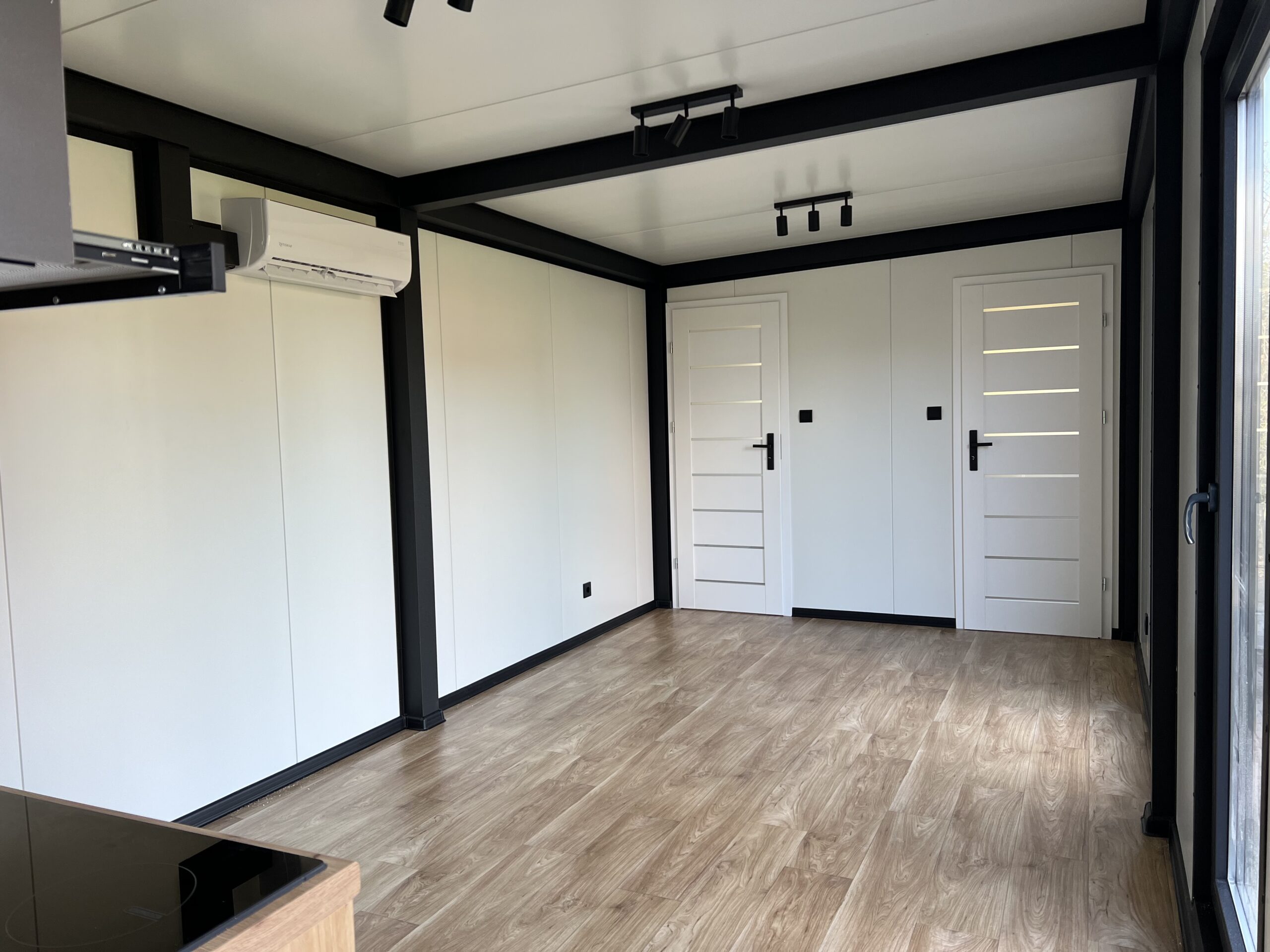 De niet dragende binnenwanden worden uitgevoerd als sandwichpanelen van het merk Europanels. De badkamer wordt aan de binnenzijde voorzien van spc. Het verlaagd plafond is afgewerkt met spc. De koven worden aan de binnenzijde afgedekt met zwarte tin in een basiskleur RAL9005 mat.