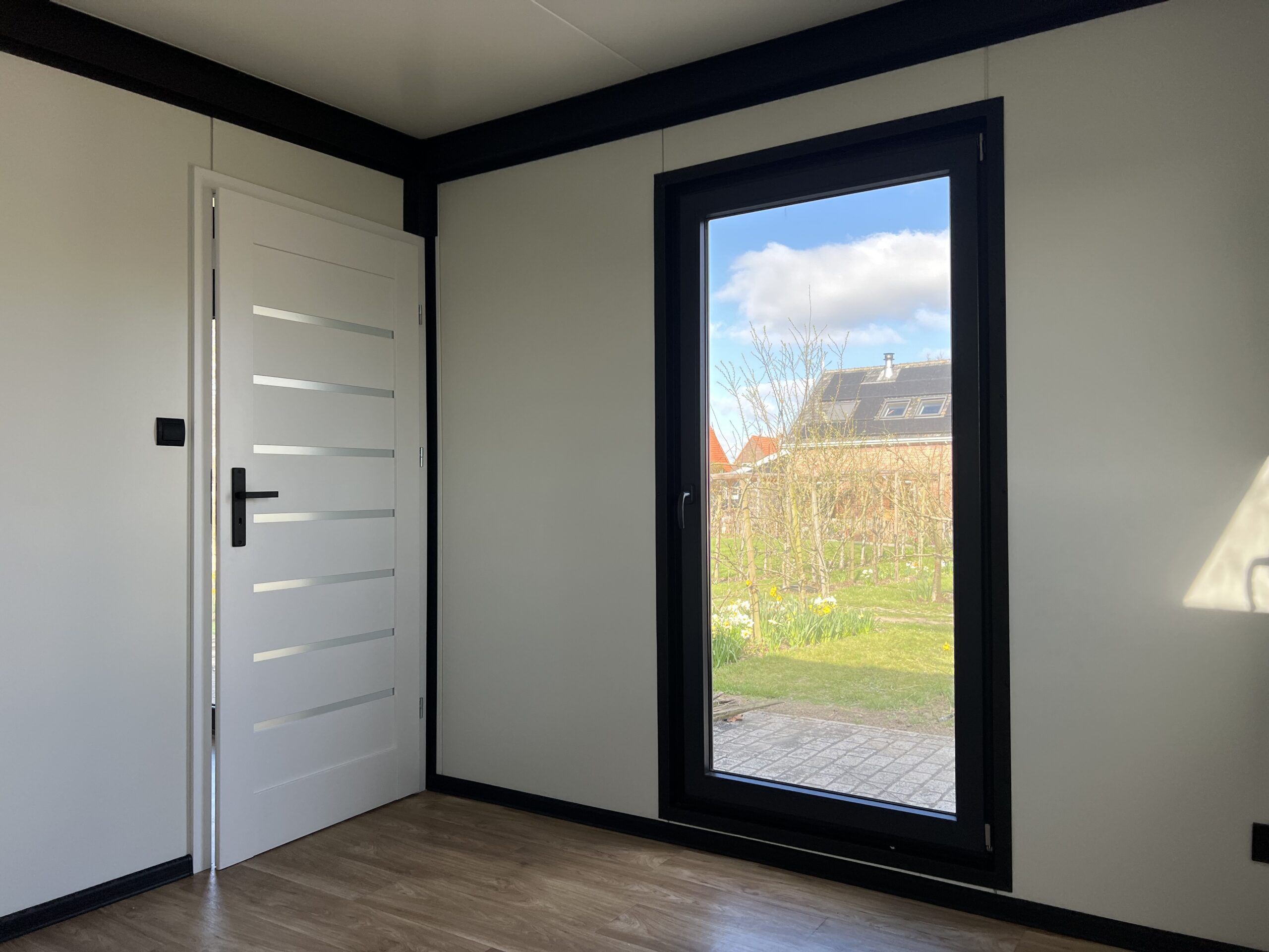 De binnendeurkozijnen zijn uitgevoerd in staal of hout RAL9010. Voorzien van een volkerndeur – HPL 9010.